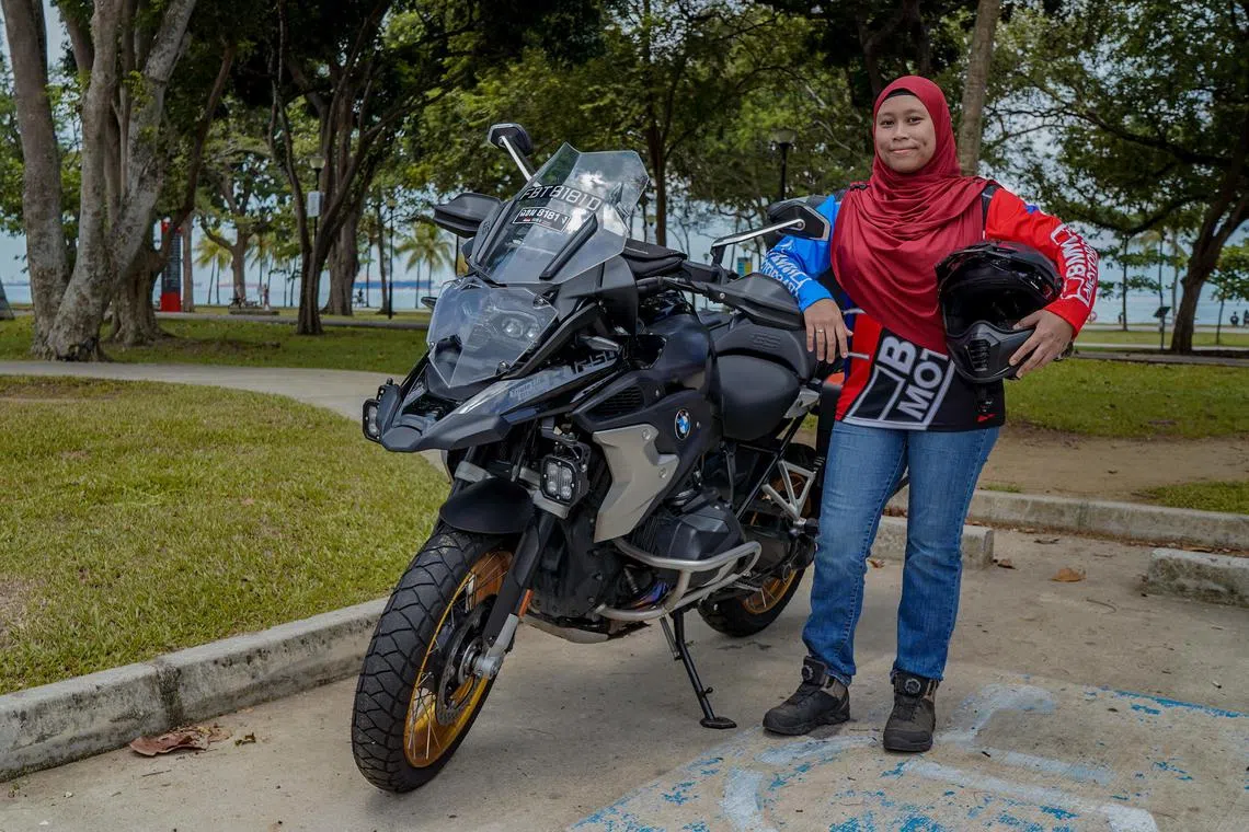 Beliau mungkin seorang wanita kecil molek, namun Cik Radiah Sumadi tiada masalah mahupun kebimbangan menunggang motosikal yang lebih dua kali lebih berat daripada tubuhnya.
