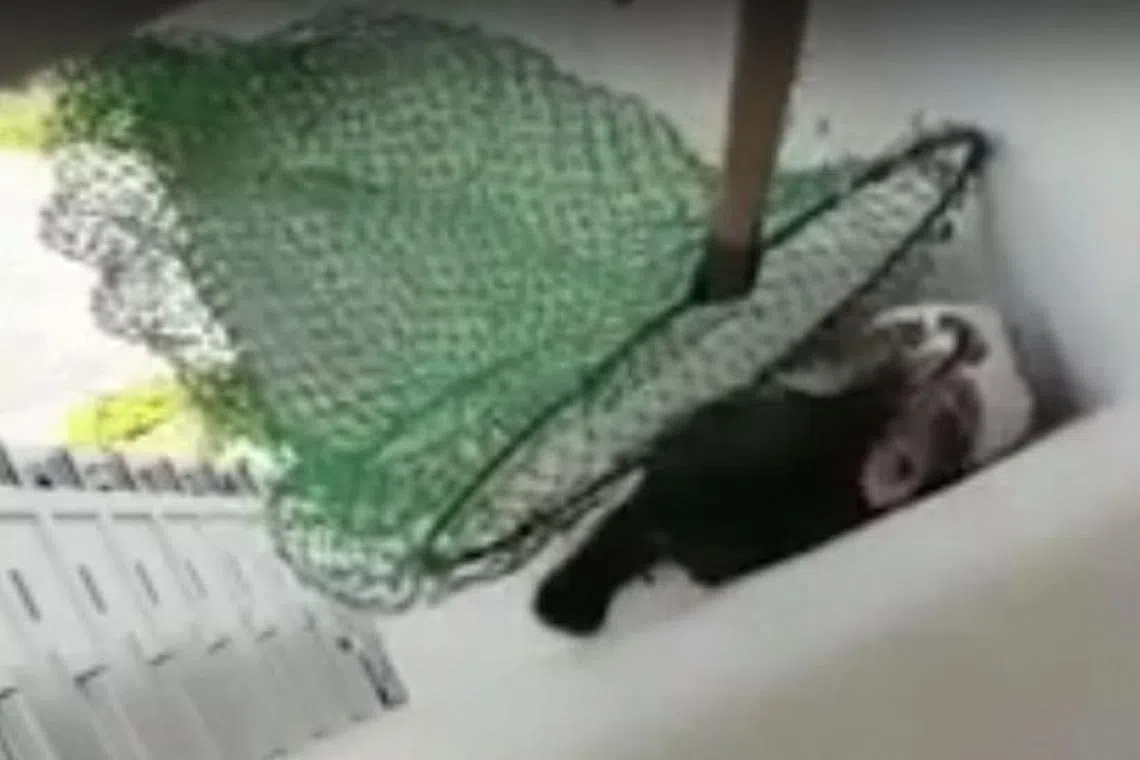Individu yang melakukan usaha menyelamat itu, Encik Richard Ng, 48 tahun, dilihat menggunakan satu jaring hijau dan perlahan-lahan memujuk kucing itu, yang dipercayai berusia antara tujuh bulan dan setahun, untuk memasuki jaring tersebut sebelum diangkat.
