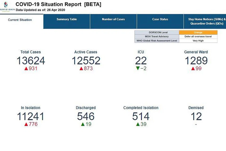 Singapura sejauh ini mencatatkan 13,624 kes koronavirus, di mana 12,552 merupakan kes aktif.