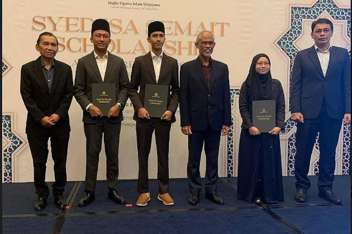 Mereka ialah Encik Alfawzul Kabir Mohamad Faizal dan Encik Hakeem Samsuri dari Madrasah Aljunied Al-Islamiah, serta Cik Nur Zahratul Humaira Hilmi dari Madrasah Alsagoff Al-Arabiah, yang ketiga-tiganya telah diterima masuk ke Universiti Al-Azhar As-Sharif di Cairo, Mesir.