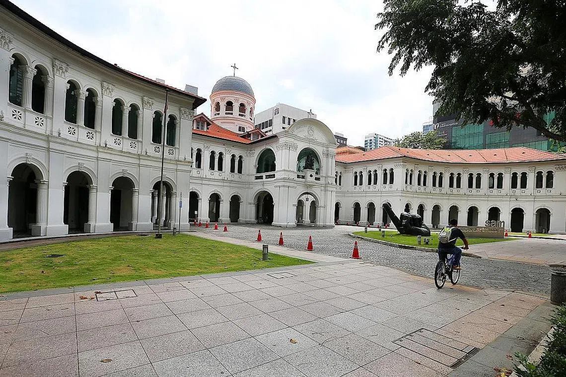 JALANI PENINGKATAN: Muzium Seni Singapura yang ditempatkan di bekas bangunan sekolah, Institusi St Joseph (SJI), di Bras Basah Road, merupakan Monumen Negara yang telah diwartakan. Ia bakal dipertingkat memandangkan ia belum pernah menjalani kerja-kerja peningkatan sejak dibuka pada 1996. - Foto fail -
