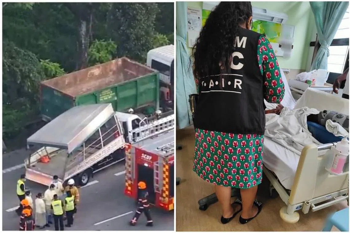 Seramai 17 pekerja berada di belakang lori yang dalam perjalanan ke tapak binaan di Woodlands.