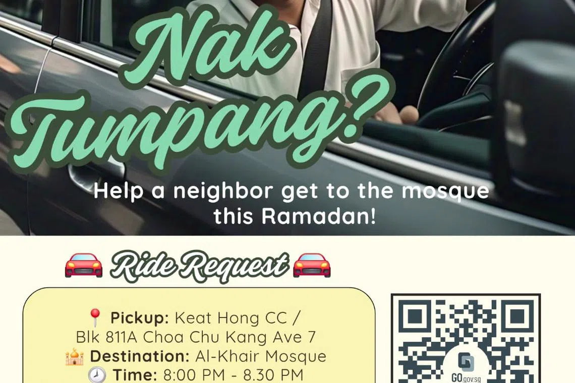 ‘Nak Tumpang’ ke masjid? Penduduk daerah M³@Chua Chu Kang boleh manfaatkan inisiatif baru Ramadan ini