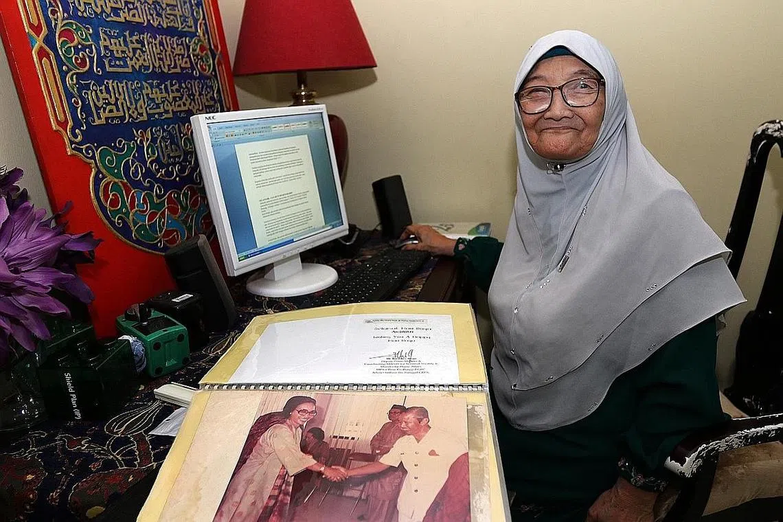 TERUS AKTIF: Cik Saleha Mohd Shah masih terus aktif dalam kegiatan kemasyarakatan hasil sikap yang tidak jemu melakukan pelbagai pekerjaan dan kegiatan untuk masyarakat sejak muda. Kini, dalam usia 83 tahun, beliau menjadi aktivis dan naib pengerusi MAEC Punggol East, dan terkini menjadi pengasas Persatuan Aksi Kemajuan Sosial dan Ilmu (Paksi) yang ditubuhkan pada Julai tahun lalu. - Foto SHAHRIYA YAHAYA -