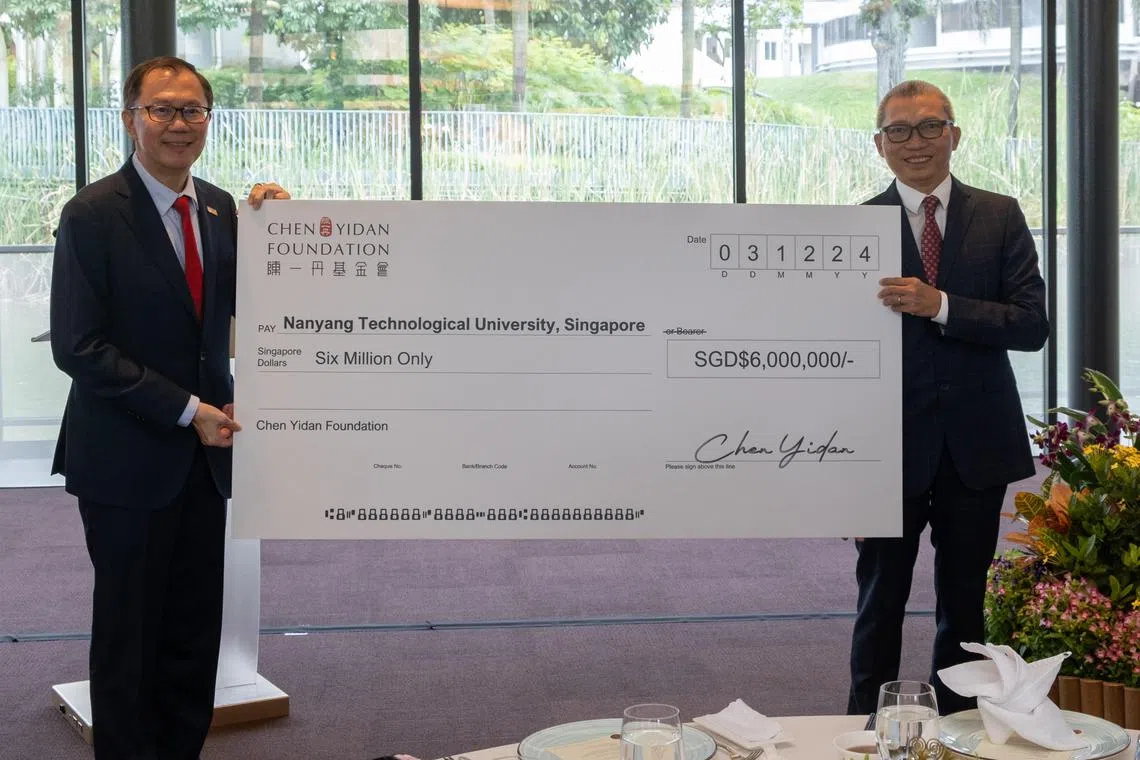 Usaha meningkatkan pendidikan, penyelidikan dan menarik bakat terbaik antarabangsa dalam jurusan kecerdasan buatan (AI) di Universiti Teknologi Nanyang (NTU) akan diperkukuh dengan suntikan hadiah $6 juta daripada Yayasan Chen Yidan.