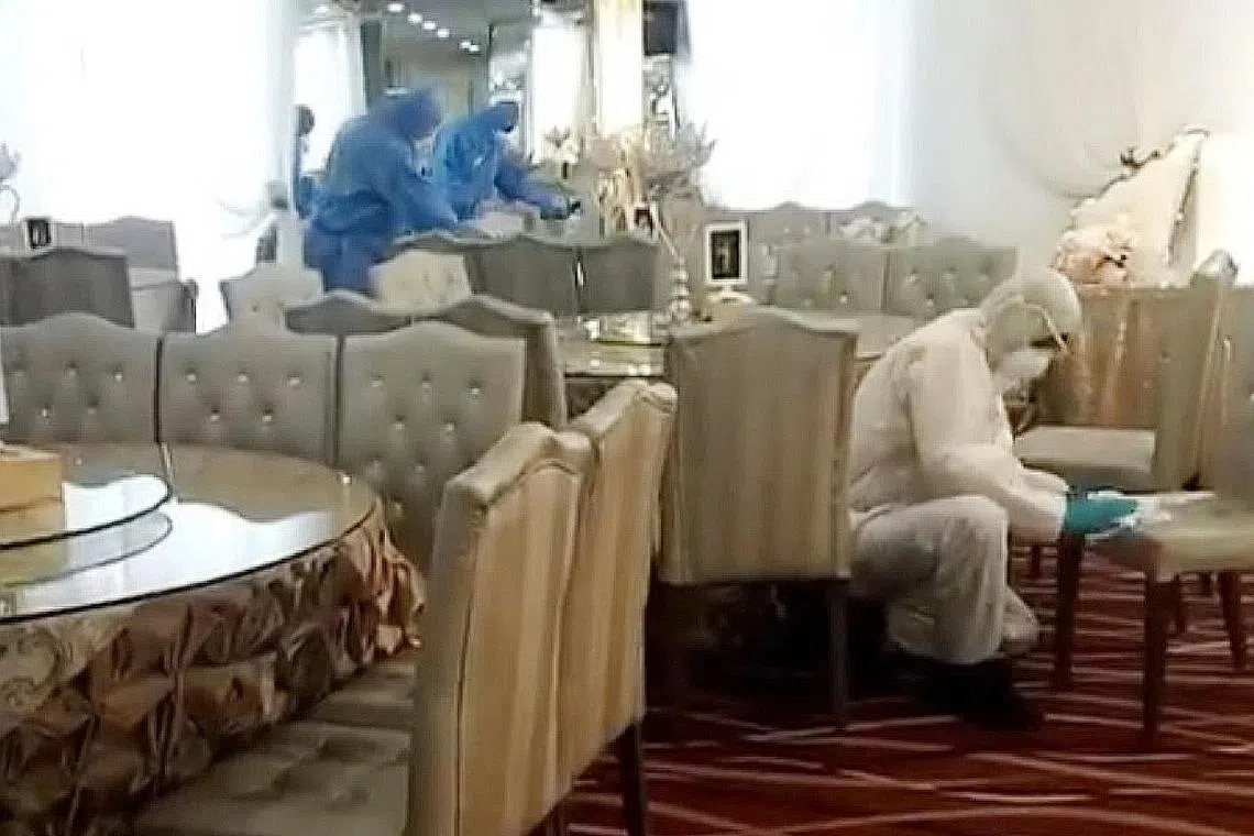 KELOMPOK BARU: Orange Ballroom di Tanjong Katong Complex menjalani proses penyahjangkit selepas kes jangkitan Covid-19 disahkan dalam kalangan hadirin majlis perkahwinan di dewan itu pada 21 Mac lalu. - Foto SHINMIN -
