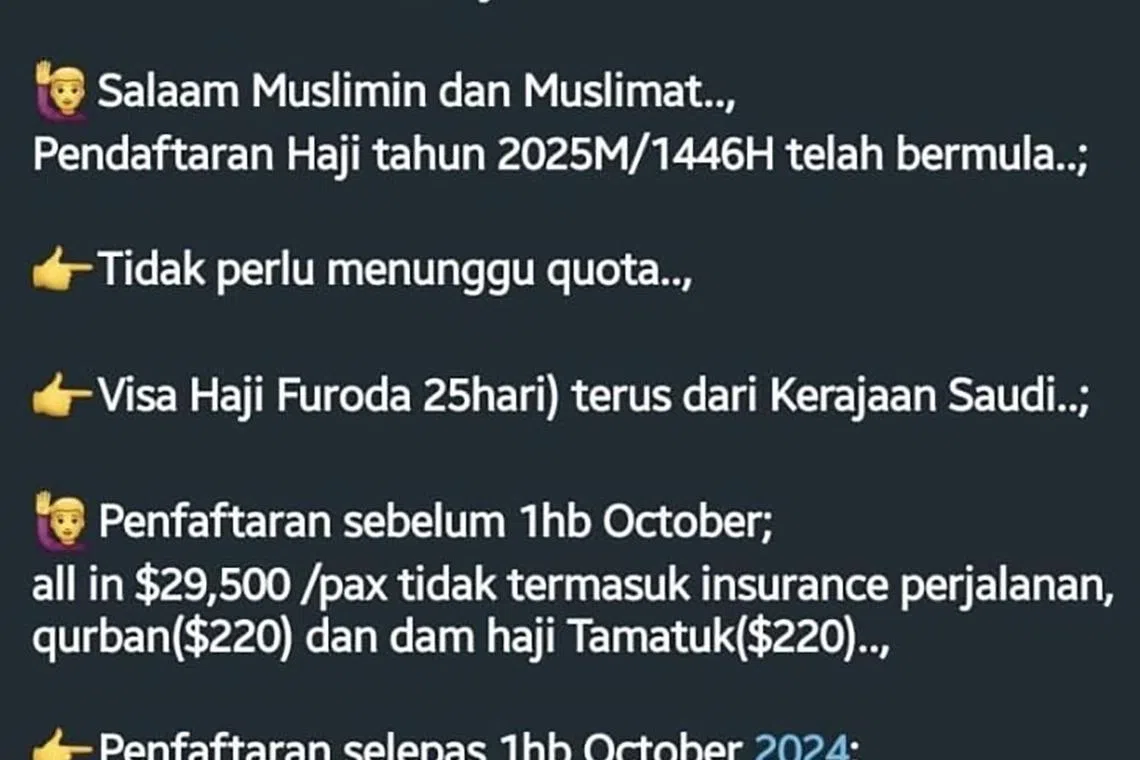 Sedang jemaah Singapura mula menerima surat tawaran menunaikan haji musim 2025 rasmi daripada Majlis Ugama Islam Singapura (Muis), terdapat segelintir yang memilih pakej haji tidak rasmi untuk menunaikan rukun Islam kelima itu.