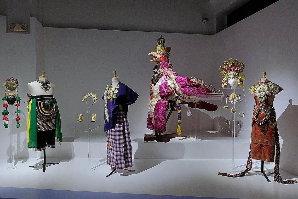 Dengan sayap selebar 3.4m, kostum yang dibawa masuk dari Yogyakarta, Indonesia, adalah antara lebih 80 objek, sama ada diambil daripada koleksi negara atau dipinjam daripada pemberi pinjaman, yang bertujuan mencetuskan perbualan tentang apa yang dimaksudkan sebagai Melayu lapor The Straits Times.