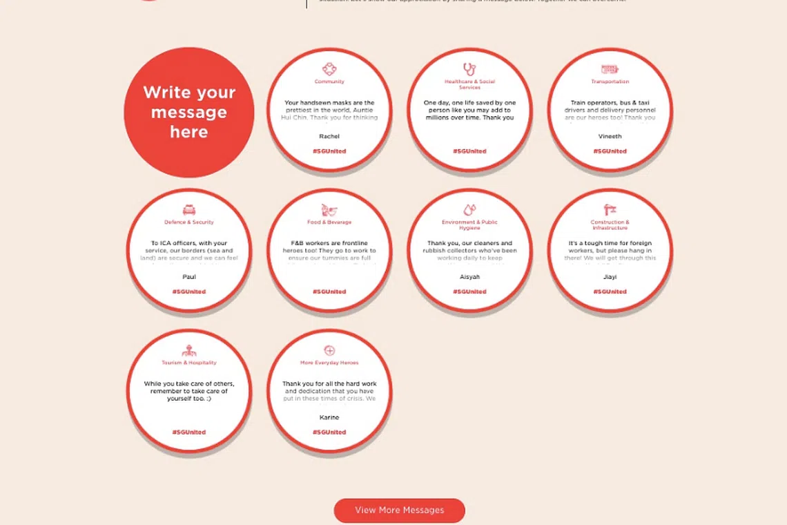 Menerusi papan ini, orang ramai boleh menulis mesej sokongan dan penghargaan kepada pekerja penting dan kakitangan barisan depan, serta orang lain di kalangan masyarakat mereka, menurut kenyataan bersama MCCY, SG United dan SG Together.