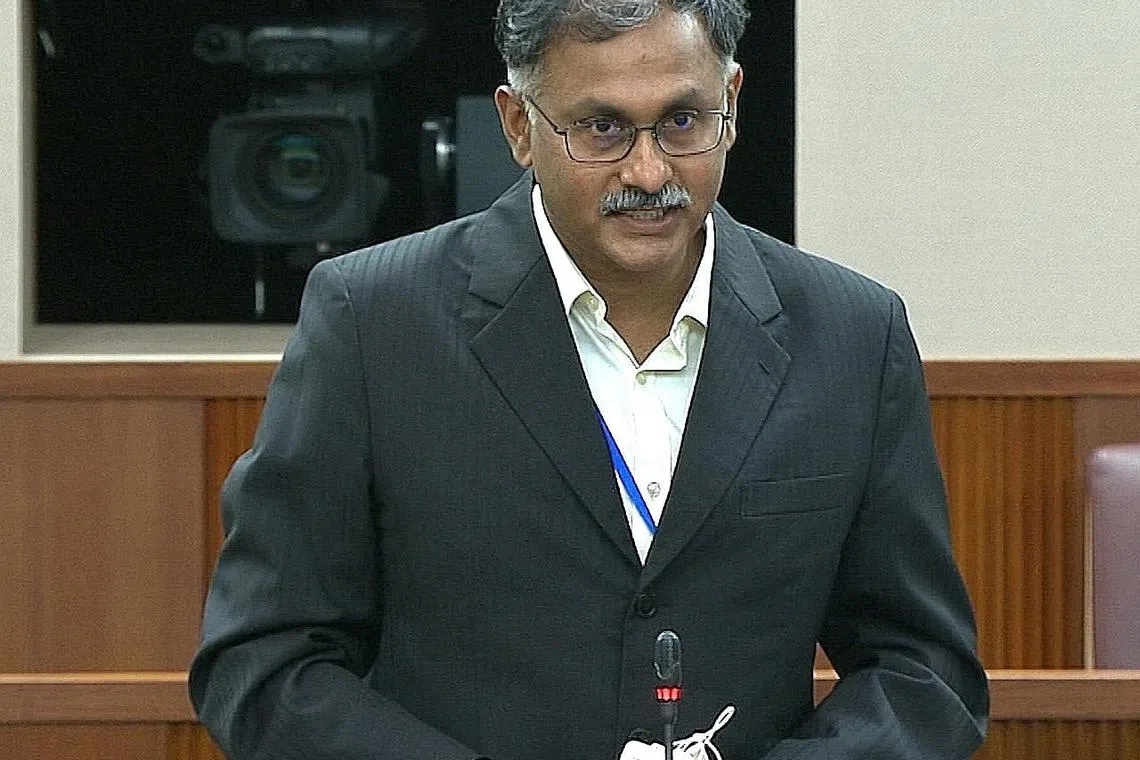 BUAT SARANAN: Encik Murali usul agar Parlimen melabur dalam satu sistem teknologi maklumat baru yang akan periksa kehadiran dan jumlah soalan parlimen diketengahkan oleh seorang Anggota Parlimen (AP). - Foto GOV.SG -
