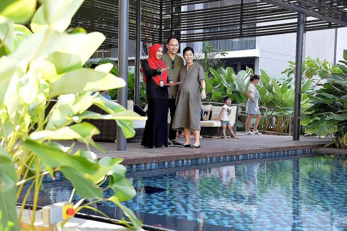TARIKAN EC: Encik Zulammar dan Cik Ong Eyak Pei ingin tinggal di EC untuk membina keluarga dan kemudahan ala kondominium, seperti kolam renang, memikat mereka. Mereka bersama ejen hartanah Nona Kirana. - Foto M.O. SALLEH -