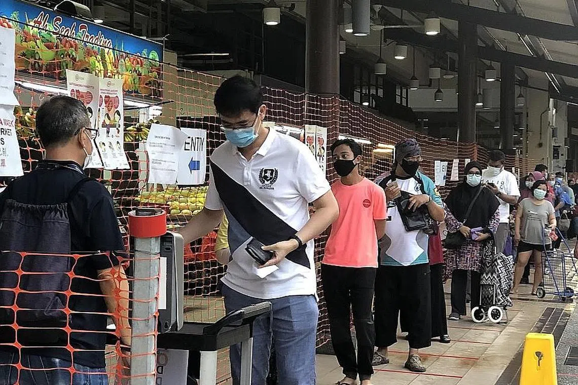 RANTAIAN orang yang beratur untuk memasuki pasar popular seperti Pasar Geylang Serai dan Pasar Chong Pang kelihatan lebih pendek semalam meskipun ia cuti umum Hari Pekerja.