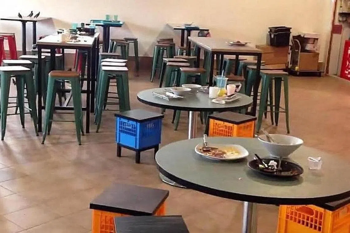 Mereka juga mengadu tentang meja yang tidak dibersihkan oleh kontraktor pembersihan dan pinggan mangkuk yang dirosakkan pencuci.