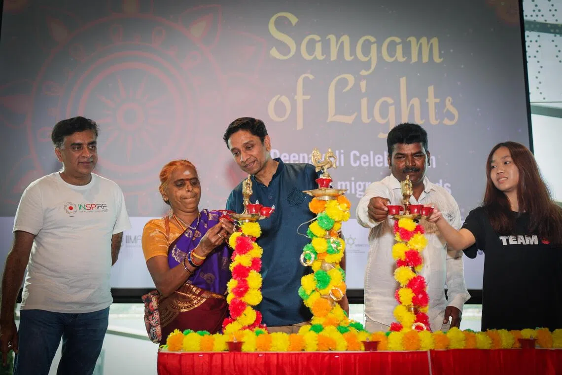 “Kami faham bahawa berjauhan daripada keluarga bukanlah sesuatu yang mudah... Sebab itulah kami berada di sini, untuk meraikan bersama dan memberi jaminan bahawa walaupun anda jauh dari tanah air, anda tidak keseorangan di Singapura,” ujar Encik Dinesh.