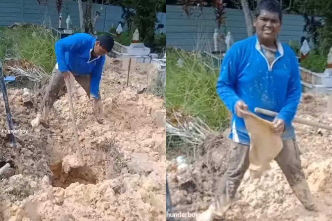 Dalam satu video yang dimuat naik di laman Tik Tok milik akaun Maatin, dia dilihat menggali tanah kubur dengan cangkul pada tengah hari, di bawah sinar matahari yang kelihatan amat terik.