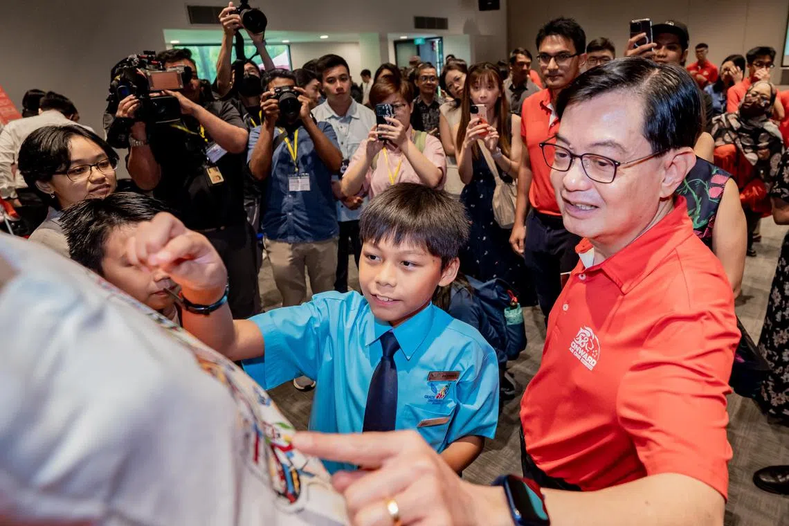 Timbalan Perdana Menteri yang juga Menteri Penyelaras bagi Dasar Ekonomi, Encik Heng Swee Keat, turut menemui 21 pelajar yang terlibat dalam karya seni itu semasa majlis pelancaran rekaan mereka pada Khamis.