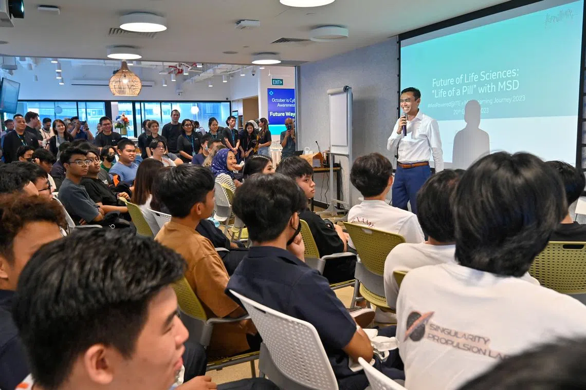 Lebih 50 pelajar Institut Pendidikan Teknikal (ITE) menghadiri satu lawatan sambil belajar ke pejabat MSD Pharma (Singapore) anjuran firma itu dengan kerjasama Yayasan Mendaki.