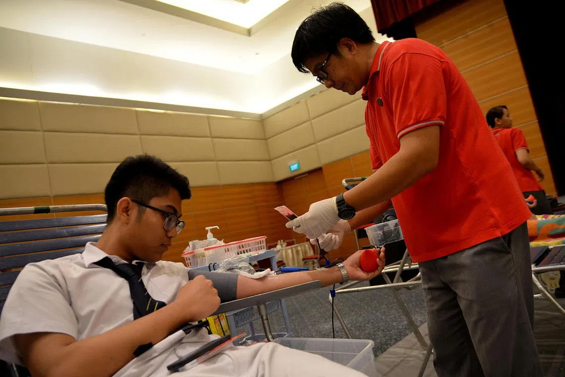 MEMULAKAN SESUATU YANG BARU: Muhd Saiful Ghazali terus menuju ke auditorium Singapore Press Holdings (SPH) selepas sekolah untuk menderma darah. Dia merupakan orang pertama dalam keluarganya berbuat demikian. - Foto SHAKIR SAIFUDDIN -