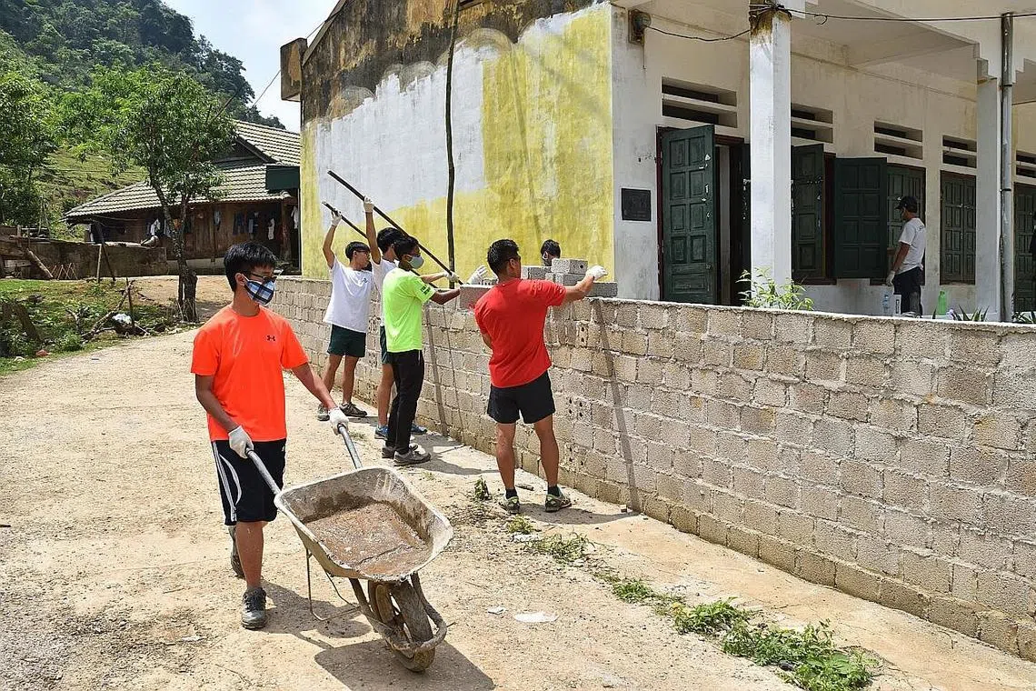 PROGRAM LUAR NEGARA: Sekumpulan pelajar St Joseph's Institution (SJI) membantu menyenggarakan Sekolah Rendah Hang Kia di Vietnam. - Foto ihsan AHMAD UKAIL ISMAIL -