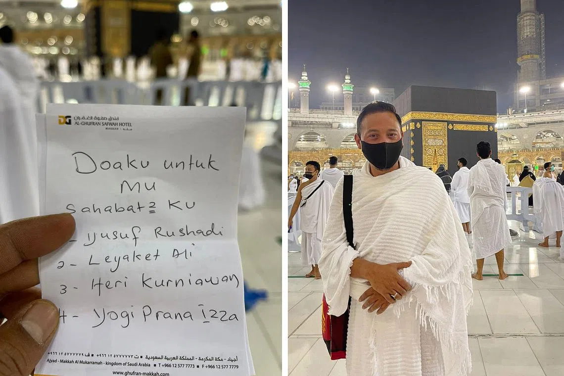 Satu gambar menunjukkan Allayarham berdiri di hadapan Ka'abah, sementara satu lagi ialah senarai nama sahabat Allahyarham yang beliau doakan.
