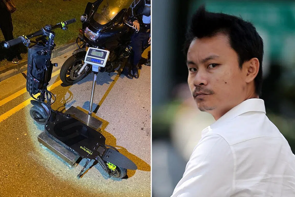 SEORANG pemilik kedai e-skuter, Samuel Tan Woon Yeow, dihukum penjara seminggu semalam, setelah didapati bersalah menggunakan e-skuternya yang tidak mematuhi syarat pada kelajuan 135 kilometer sejam (ksj) di Lim Chu Kang Road.