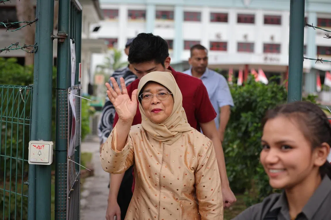 Sekitar 8.15 pagi, Presiden Halimah Yacob dan suaminya, Encik Mohamed Abdullah Alhabshee, tiba di pusat mengundi di Sekolah Menengah Chung Cheng untuk mengundi. Mereka meninggalkan sekolah itu sekitar 8.45 pagi.