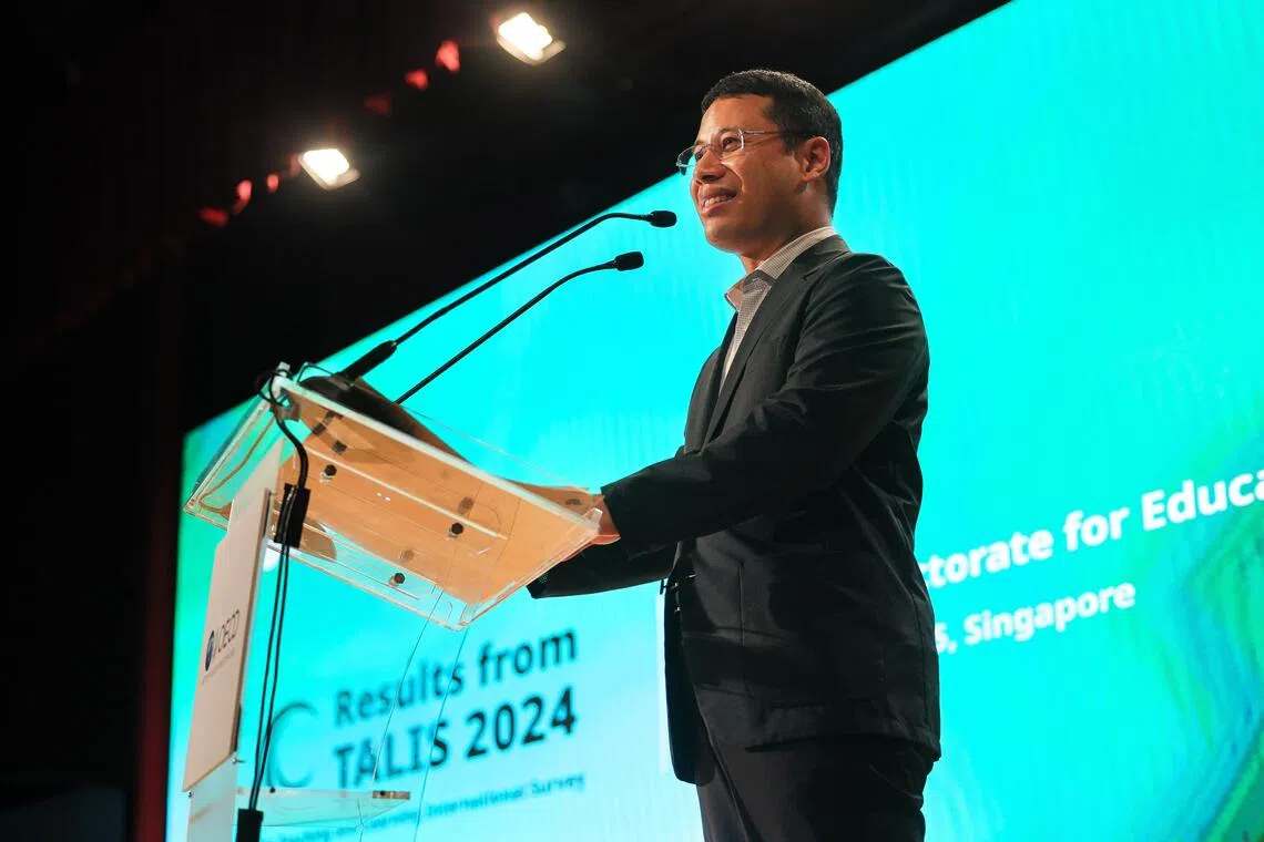 Beliau berkongsi pengamatannya semasa acara pelancaran dapatan Kajian Antarabangsa Pengajian dan Pelajaran (Talis) 2024 di pejabat Kementerian Pendidikan (MOE), di North Buona Vista Drive, pada 7 Oktober.