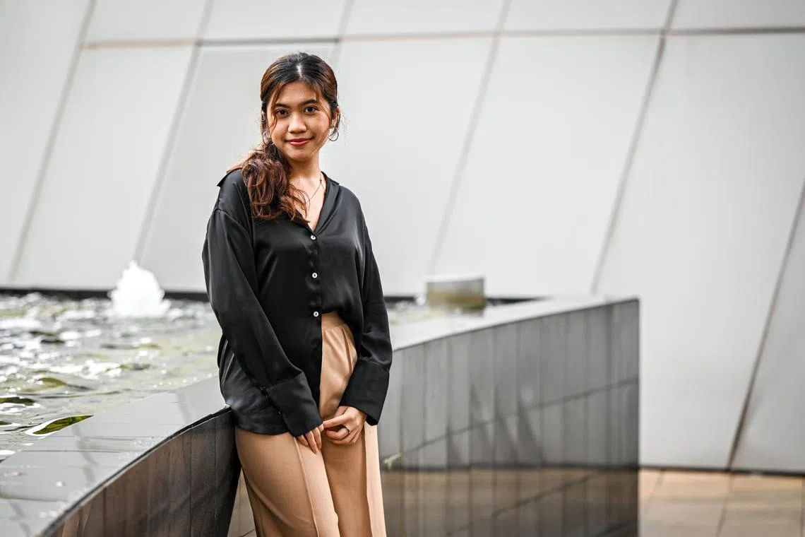 RINGANKAN BEBAN: Penerima dermasiswa Yayasan Pendidikan Buddhist Singapura (SBLEF), Cik Atiqah Nadzirah Ishak, syukur bantuan kewangan itu dapat bantu meringankan beban pembayaran yuran sekolahnya di Universiti Sains Kemasyarakatan Singapura (SUSS). - Foto BH oleh SHAFIQ APANDI