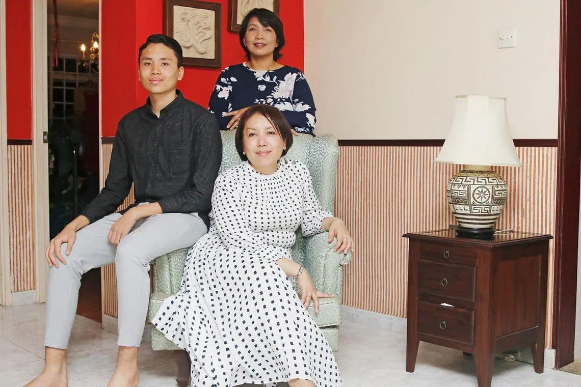 HARUNGI CABARAN: Cik Hashimah Bachok (tengah) berjaya mengharungi penyakit barah payu dara yang dideritanya selama setahun dengan sokongan kuat oleh kakak, Cik Hamidah, dan anak, Encik Nurshafiq Mohamed Ali. - Foto BH oleh JEREMY KWAN -