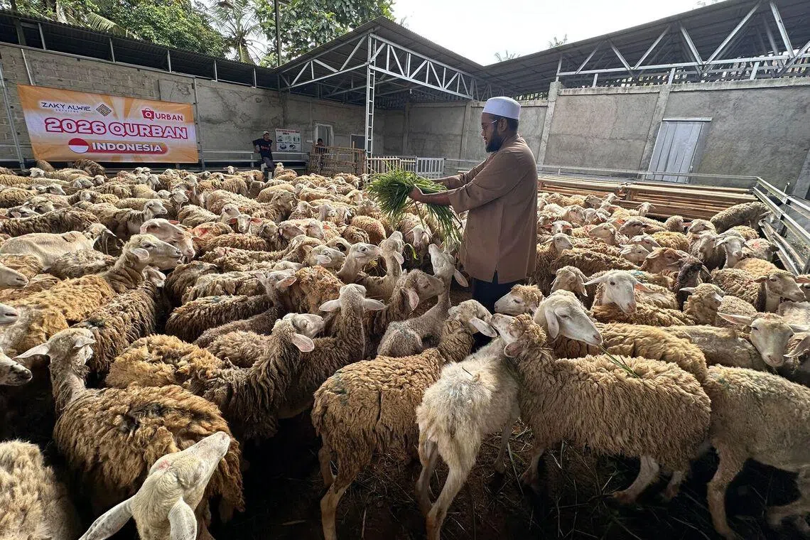 Encik Zaky Shaik Alwie di kandang kambing miliknya di Indonesia, sebagai sebahagian usaha penternakan untuk ibadah korban. - Foto ZAKY ALWIE TRAVEL & SERVICES PTE LTD