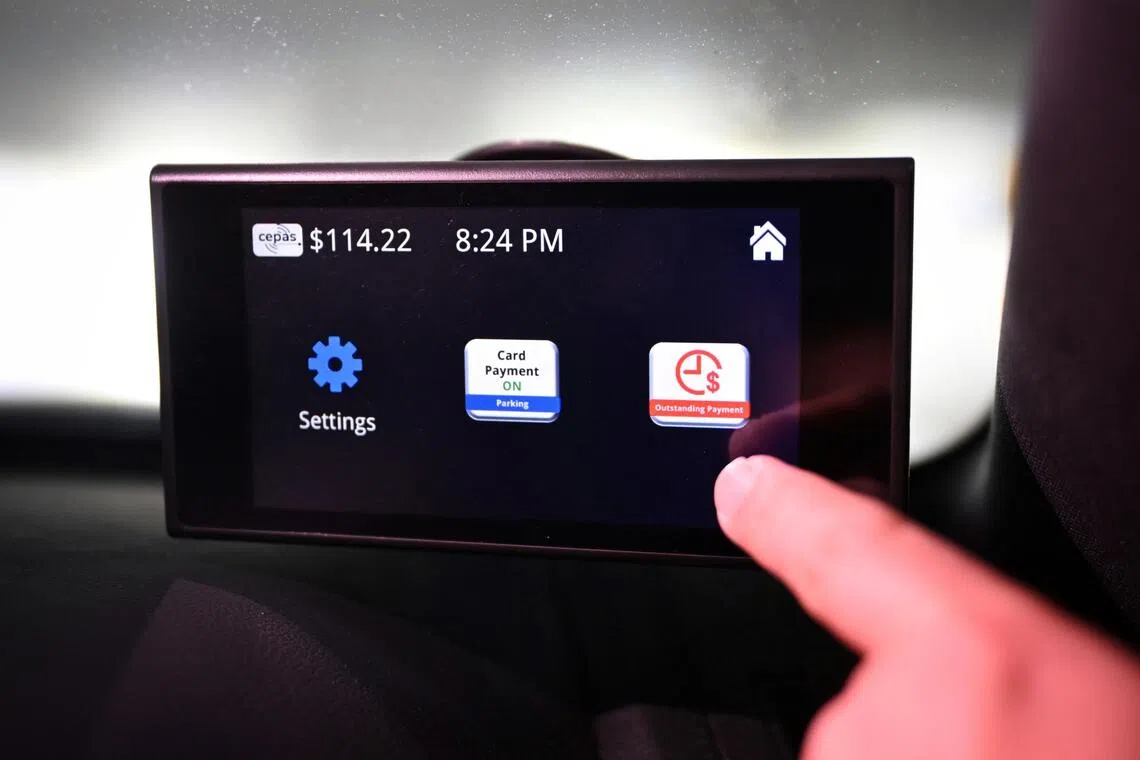 Pembayaran boleh dibuat melalui paparan skrin sentuh apabila kenderaan tidak bergerak, dengan jumlahnya ditolak daripada kad nilai tersimpan dalam OBU.