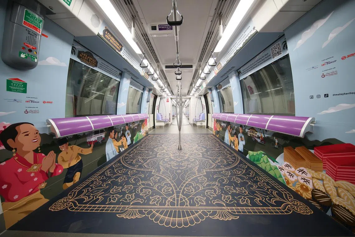 Unsur budaya Melayu seperti baju raya dan songkok, serta hidangan rendang, ketupat, dan kuih makmur, menghiasi kereta api MRT, bas, dan beberapa stesen MRT sempena Hari Raya.