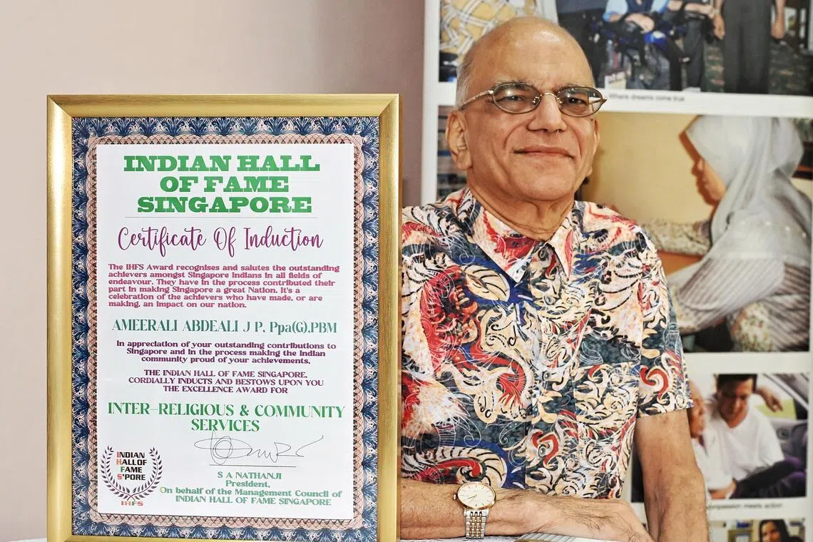 Atas sumbangannya dalam memupuk keharmonian agama dan kerja kemasyarakatan, Encik Abdeali merupakan antara 16 individu yang disenaraikan dalam Dewan Kemasyhuran India Singapura (IHFS) sewaktu majlis pengiktirafan pada 21 September di Raffles Town Club.