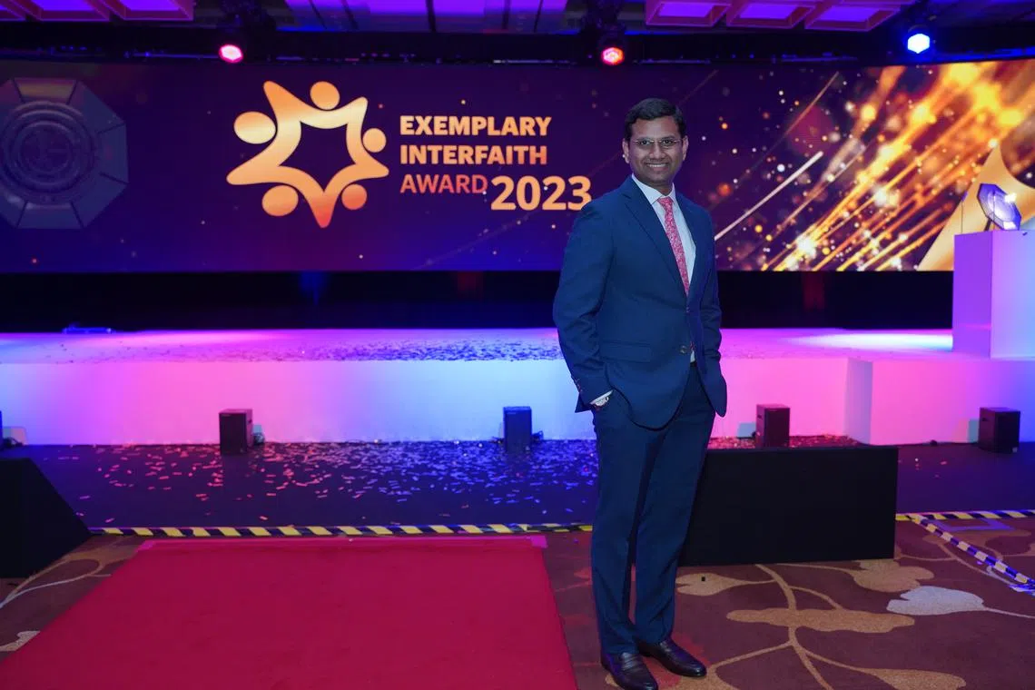 Pengasas dan presidennya, Encik Irshad, 33 tahun, menerima Anugerah Kepimpinan Belia Silang Agama daripada mantan Menteri Kanan, Encik Tharman Shanmugaratnam.