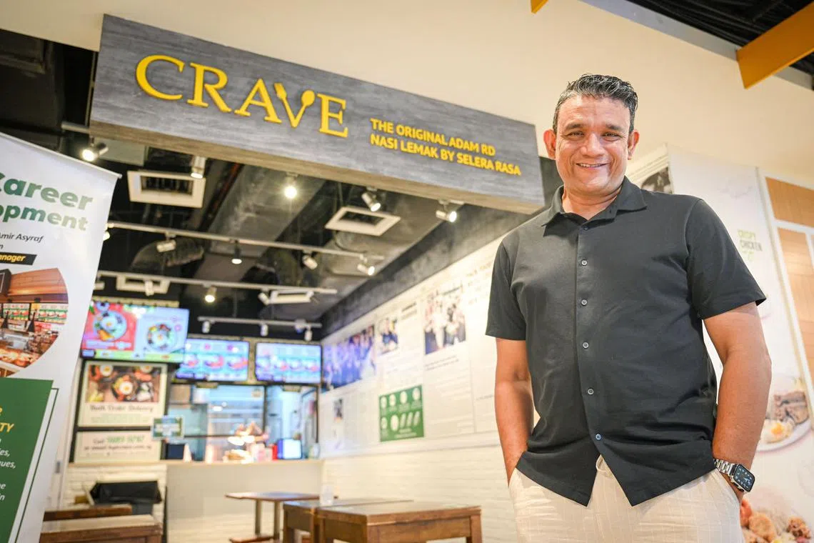 KEJAYAAN LUAR BIASA: Pengasas bersama Crave Nasi Lemak, Encik Abdul Malik Hassan, yang membuka cawangan pertama Crave di pusat beli-belah Hougang Mall (dalam gambar) pada 2015, kini berjaya mengembangkan perniagaan yang bermula dari gerai nasi lemak bapanya di Adam Road sehingga ia mempunyai 43 kedai serata negara hari ini. - Foto BH oleh SHAFIQ APANDI