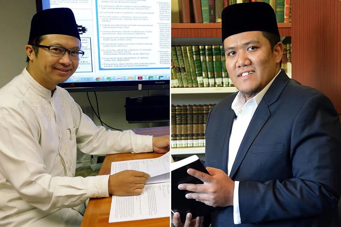 PANEL PENGADIL: Ustaz Fathurrahman (kiri) dan Ustaz Irwan merupakan antara anggota juri bagi peraduan Cabaran Mufti. - Foto-foto fail -
