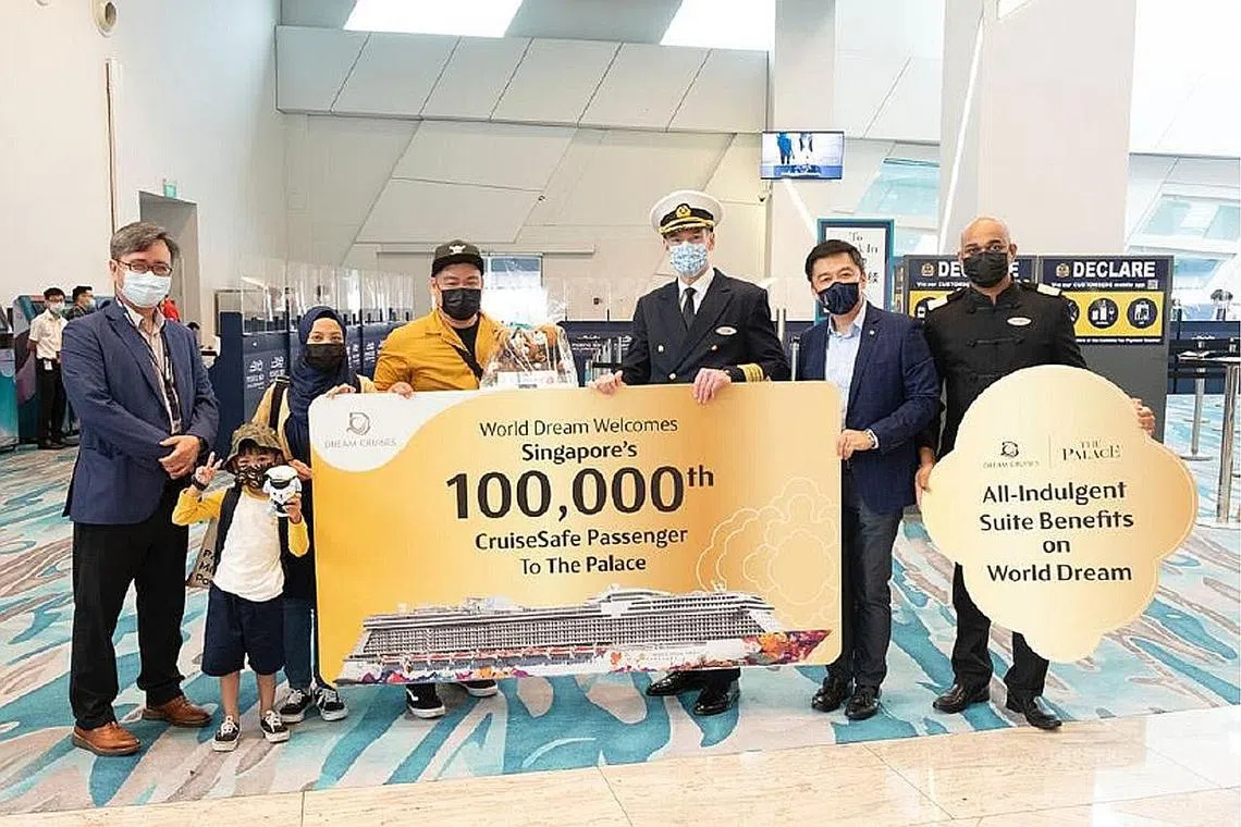 "Setelah merintis kapal persiaran selamat di Singapura, kami gembira menjadi sebahagian daripada detik penting ini untuk meraikan penumpang kapal persiaran ke-100,000 Pusat Kapal Peleseran Marina Bay Singapura sejak program itu bermula dan yang belayar atas World Dream pada 12 Mac 2021.