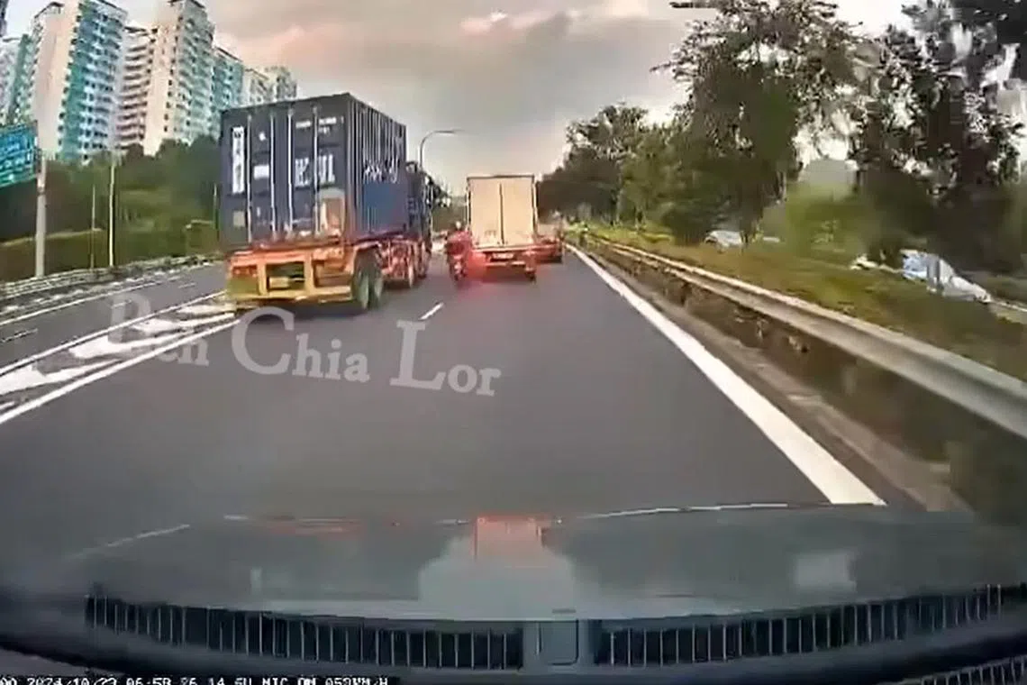 Seorang penunggang motosikal maut dalam satu kemalangan yang melibatkan lori dan treler di Ekspreswe Kranji (KJE) pada pagi 23 Oktober.