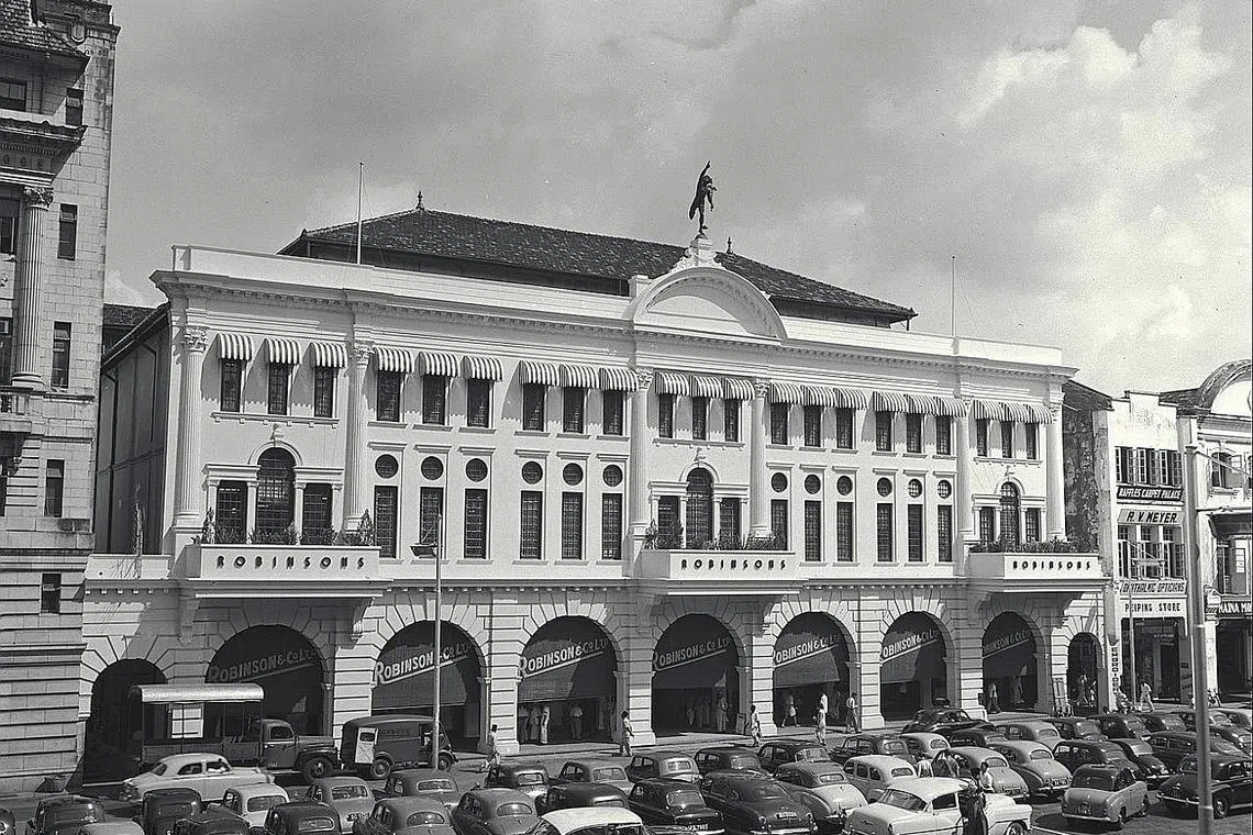 TINGGAL KENANGAN: Bangunan Robinson & Co di Raffles Place ini pernah mewarnai kehidupan penduduk Singapura namun ia berhadapan cabaran menyusuli perubahan landskap pembelian serta pandemik Covid-19. - Foto fail -