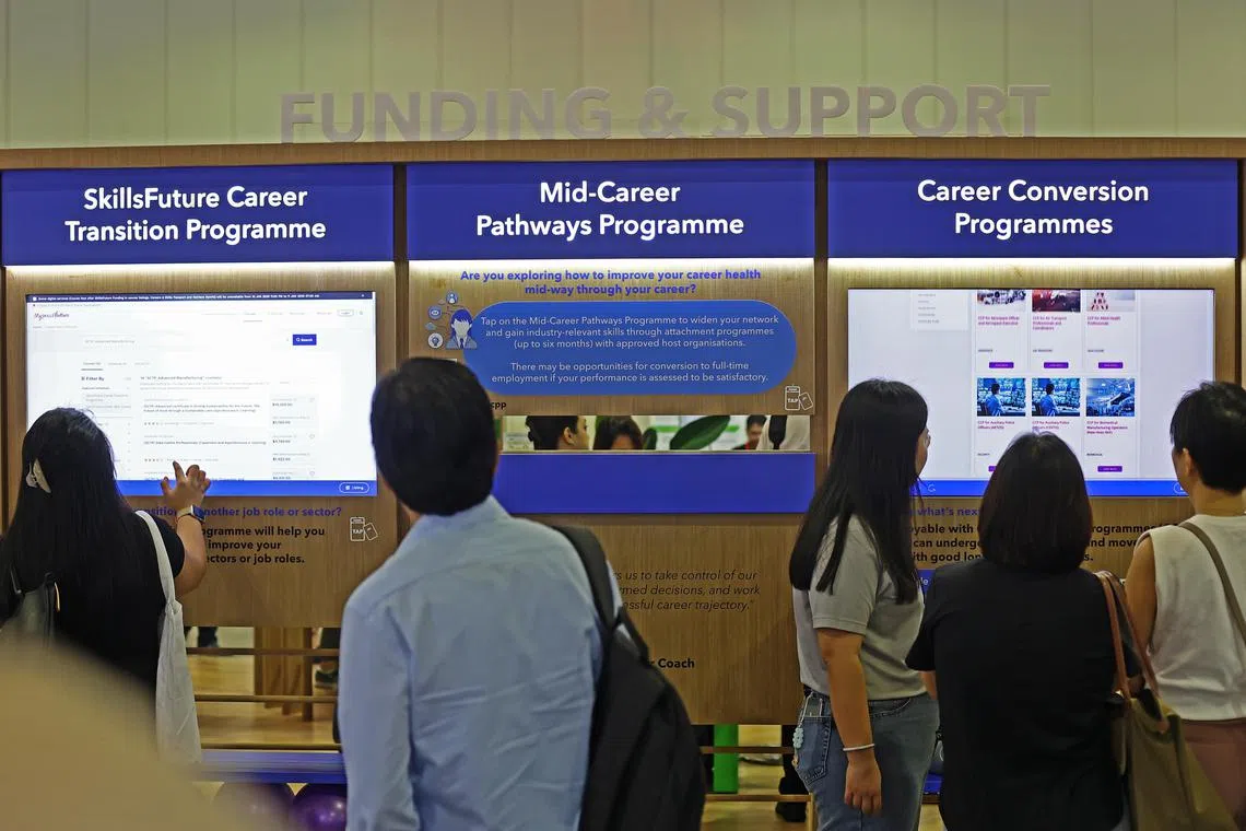 Beliau menambah, pekerja juga boleh diberi pilihan menggunakan Kredit SkillsFuture bagi bimbingan dan pementoran kerjaya, yang akan memberi manfaat kepada individu pertengahan kerjaya dalam peningkatan kemahiran atau peralihan kerjaya.