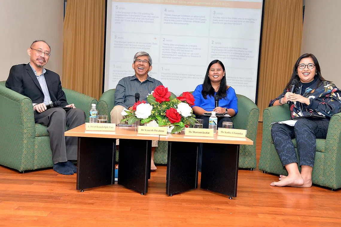 MENGAUP PELUANG EKONOMI BARU: (Dari kiri) Dr Randolph Tan, Dr Yaacob, Cik Mariam dan Cik Nadia (moderator) dalam dialog tertutup yang diadakan malam kelmarin. - Foto M.O. SALLEH -