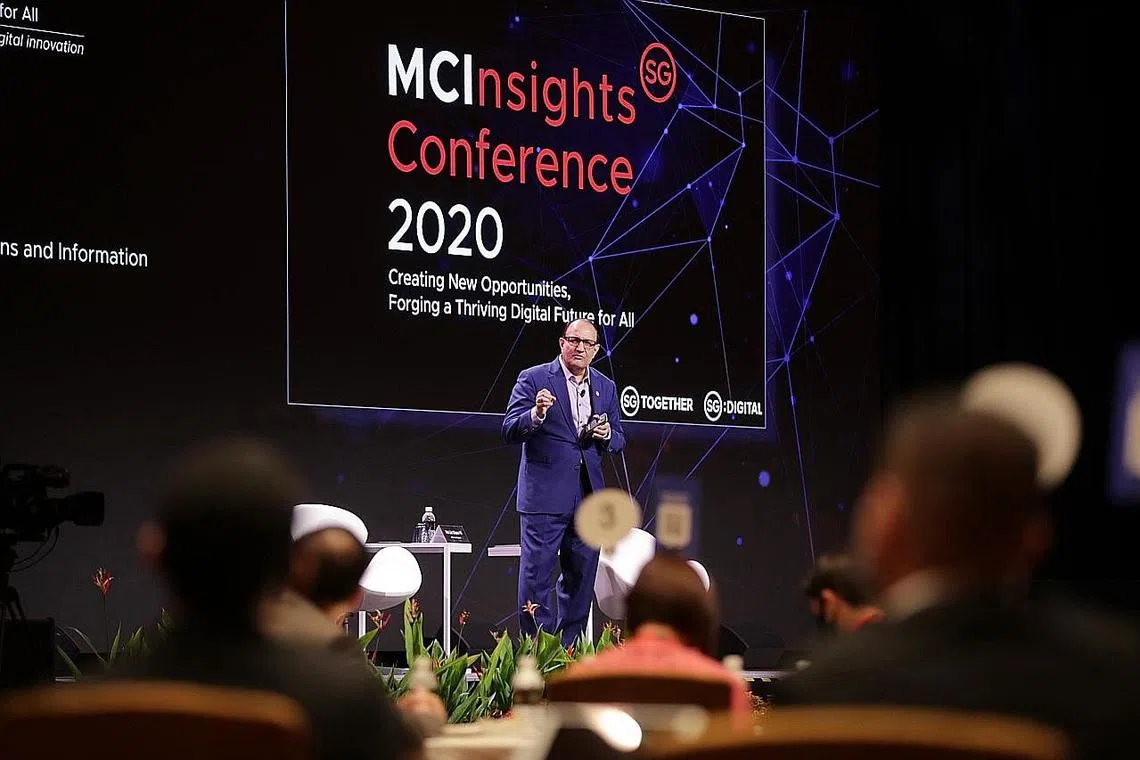 Bercakap kepada wartawan selepas Persidangan Wawasan Kementerian Perhubungan dan Penerangan (MCI) di Pusat Konvensyen dan Expo Sands semalam, Menteri Perhubungan dan Penerangan S. Iswaran menekankan peri pentingnya strategi pendigitalan Singapura.