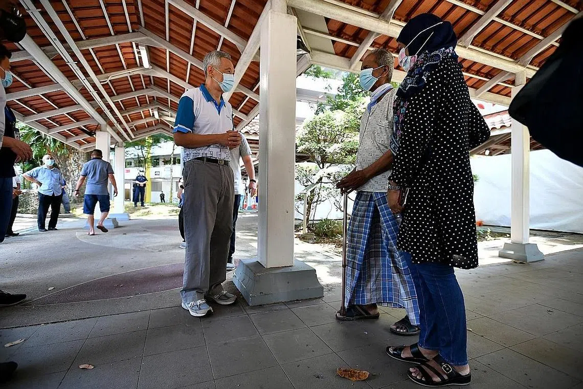 PERDANA Menteri Lee Hsien Loong telah mengunjungi tapak ujian sementara di Blok 460A Ang Mo Kio Avenue 10 pada sekitar 12.20 tengah hari semalam.