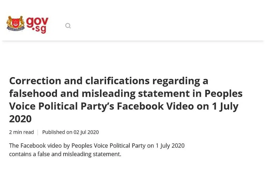 Untuk mengetahui fakta kes, sila rujuk kepada artikel Factually, "Correction and clarifications regarding a falsehood and misleading statement in Peoples Voice Political Party's Facebook Video on 1 July 2020" (http://www.gov.sg/article/ factually020720a).