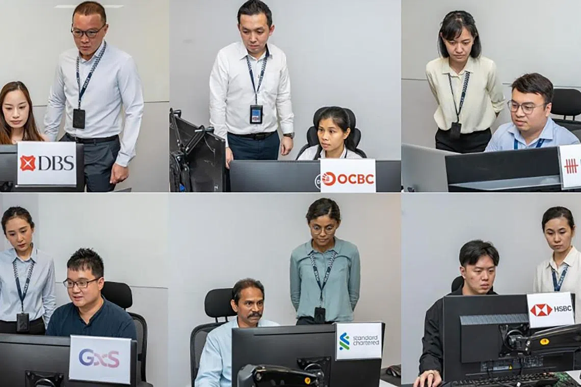 Pegawai Pusat Anti-Penipuan bekerjasama dengan enam bank dalam satu operasi selama dua bulan bagi menyekat kes penipuan. - Foto SINGAPORE POLICE FORCE