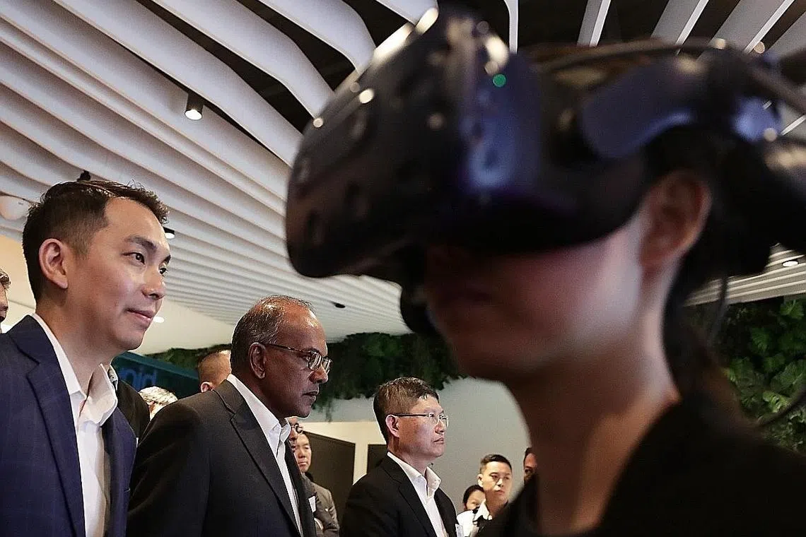 MAKMAL: Syarikat KPMG telah melancarkan Makmal Kecerdasan Buatan Realiti Maya yang merupakan sebahagian usaha KPMG untuk menyokong transformasi digital di Singapura baru-baru ini. Tetamu terhormat ialah Menteri Ehwal Dalam Negeri, Encik K. Shanmugam. - Foto BH oleh KELVIN CHNG -