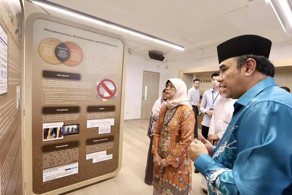 Presiden Halimah Yacob telah melawat Masjid Khadijah pada Khamis untuk melihat Galeri Majulah Kumpulan Pemulihan Keagamaan (RRG).