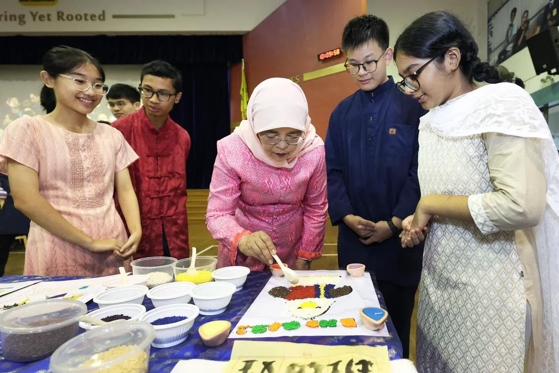 Presiden Halimah Yacob melakukan demikian semasa mengunjungi Sekolah Menengah Northbrooks pada Khamis, sempena meraikan Hari Keharmonian Kaum pada 21 Julai.