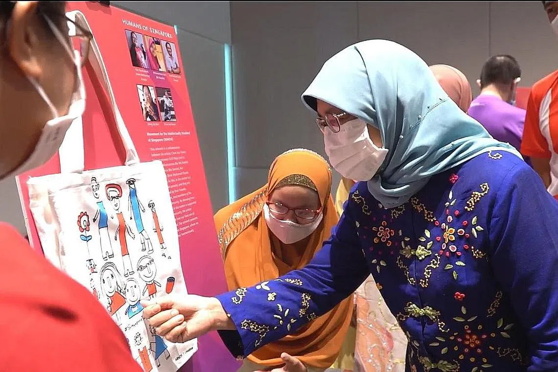 PRESIDEN Halimah Yacob semalam menemui pelukis di sebalik 20 kerja seni yang dipaparkan dalam pek cenderahati Perbarisan Hari Kebangsaan (NDP) 2020 di Enabling Village.