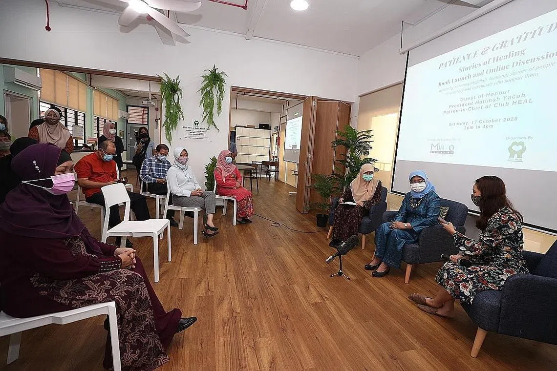 Presiden Halimah berkata demikian semasa acara pelancaran buku serta perbincangan dalam talian mengenai kesihatan mental di Kelab Heal, di Bukit Batok Ave 4, semalam.